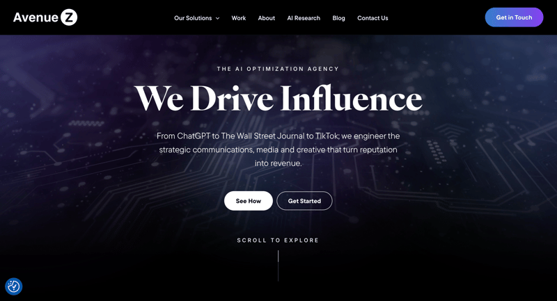 Avenue Z merges public relations with LLM optimization, understanding that AI models are trained on "influence" and high-authority media.